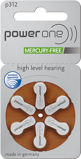 6 x Power One Hörgerätebatterien Grösse 312 / Braun